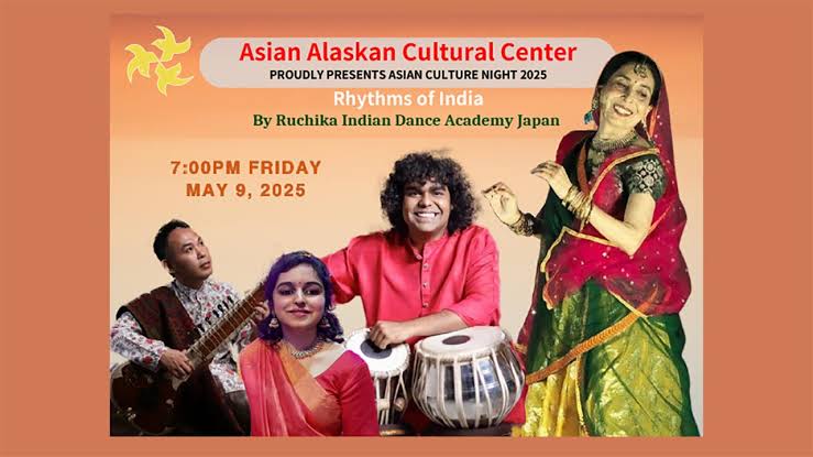 5月9日 アラスカ州 アンカレッジ Asian Culture Night 2025 Rhythms of India May 9, Friday Venue – Atwood Concert Hall Group Nalini Toshniwal- Kathak Tadao Ishihama- Sitar Jyotiprakash Mistri- Tabla Vasundara Raturi- Vocal